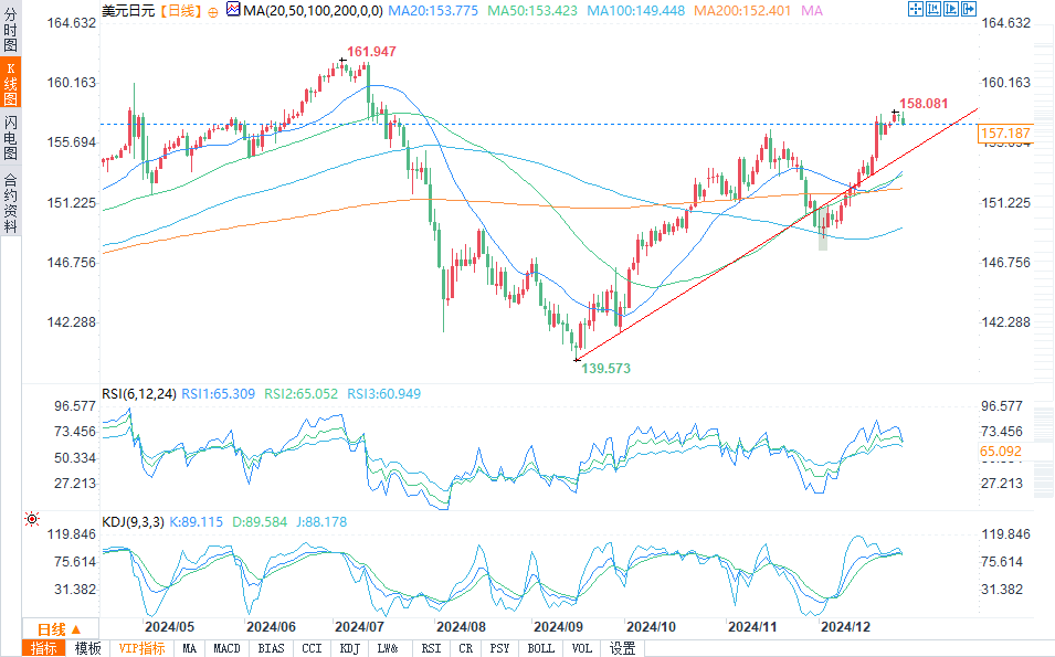 美元/日元在158 水平再次出现回调。话虽如此,美元/日元最终会上破这一水平,目前在积聚一点上行动能的过程中。