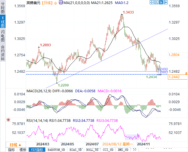 短期内,1.2485至1.2300区间可能成为英镑的重要支撑区域,若突破该区间,则可能进一步打开下行空间至1.2200甚至更低。然而,考虑到美元的强势以及英镑面临的经济和货币政策压力,预计反弹空间也将受到限制,特别是在1.2500至1.2600之间,英镑可能面临较为强劲的卖盘压力。