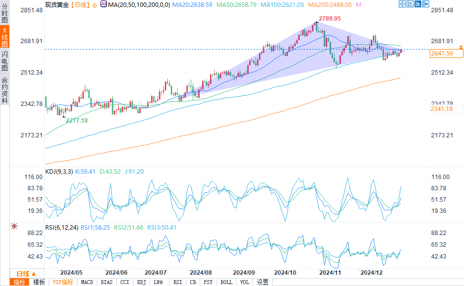 由于这一形态出现在一轮强劲上涨趋势之后,有可能它是一种看涨旗形形态,这将使得黄金价格在2025年进一步走高。若如此,黄金价格将会反弹并突破其每盎司2800美元的历史高点。