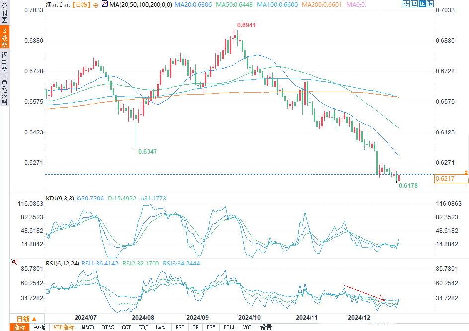 汇通财经APP讯——周四(1月2日)欧盘时段,当前外汇市场中,澳元/美元有所反弹,但仍面临跌破关键支撑风险;美元/加元受美元强势及利差推动,上行趋势显著,回调即机会;英镑/美元受美元压制,虽暂时区间震荡,但跌破支撑风险犹存,整体美元尽显强势地位。以下是对这三组货币对的分析。