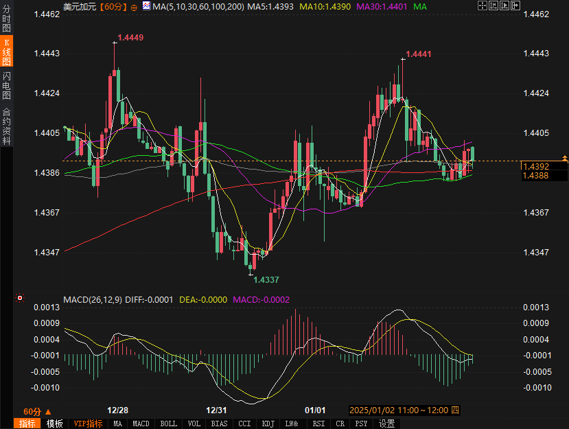 与美元的强势相比,商品货币尤其是加元在近期的走势较为复杂。由于加拿大是美国最大原油供应国,油价的走势对加元的影响尤为显著。近期,西德克萨斯中质原油(WTI)价格连续上涨,已经突破每桶73美元,创下两个月来的新高。这一波油价上涨的背后,市场普遍预期各国政府将在2025年加大经济复苏政策的力度,进一步提振全球燃料需求。油价的上涨为加元提供了有力支撑,使得USD/CAD在1.4390附近略有回落,暂时中断了此前的三日涨势。