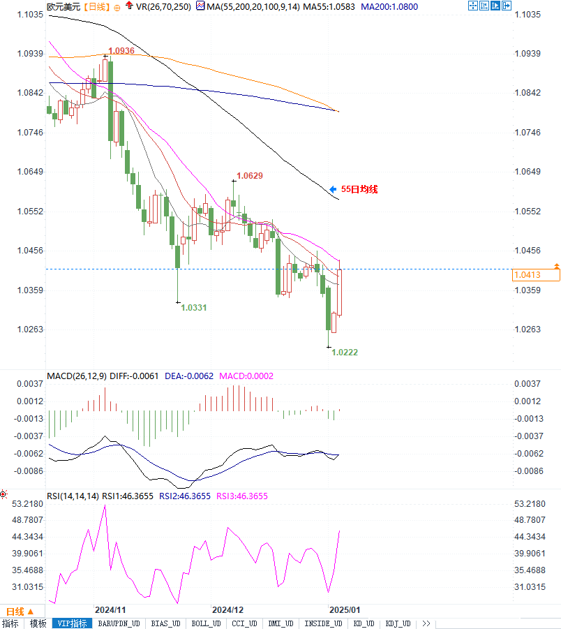 55日均线(SMA):在1.0565位置的55日均线是更高一级的目标阻力位。