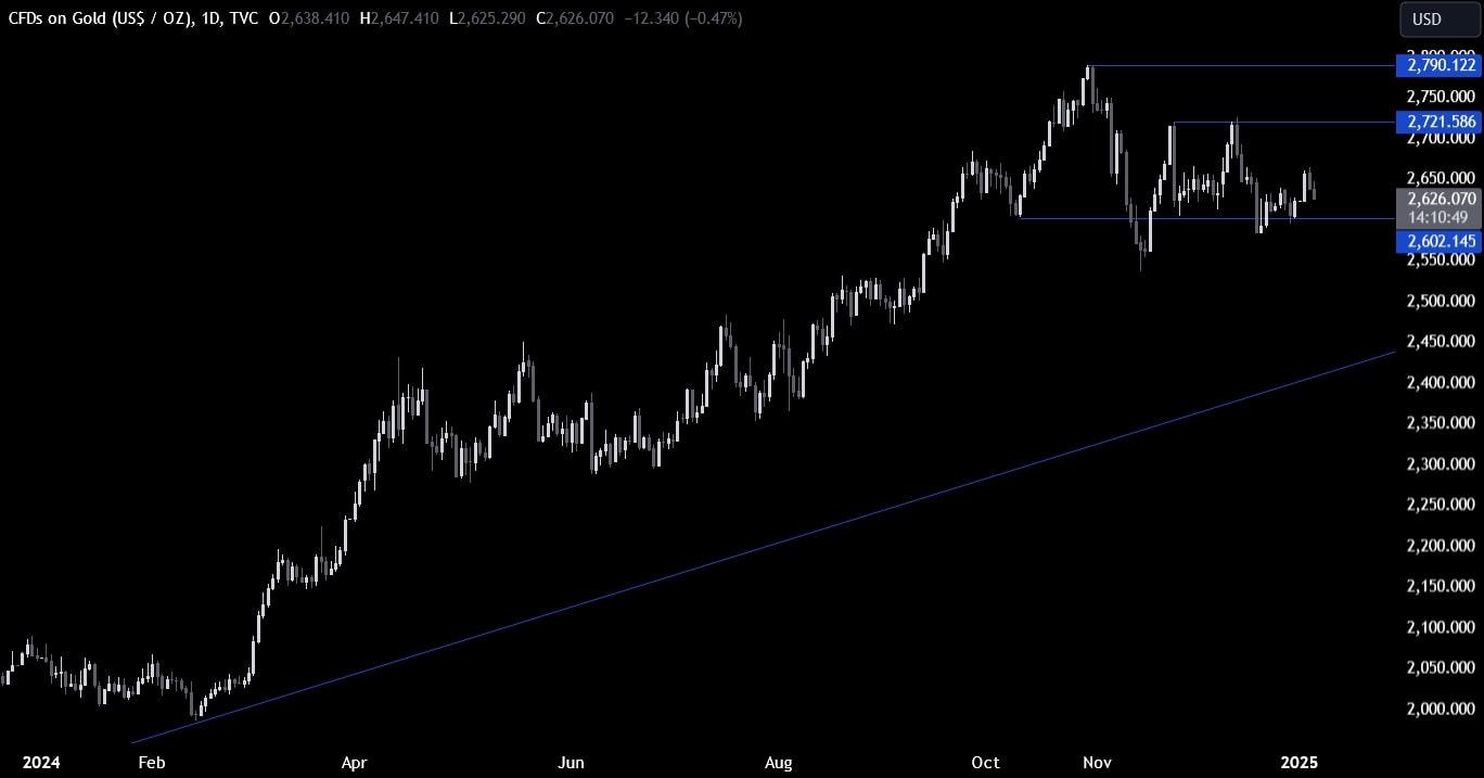 尽管12月份联邦公开市场委员会(FOMC)的最新决定曾引发了金价的大幅走低,但金价并未延续跌势,仍局限于2600支撑位和2721阻力位之间的区间内。