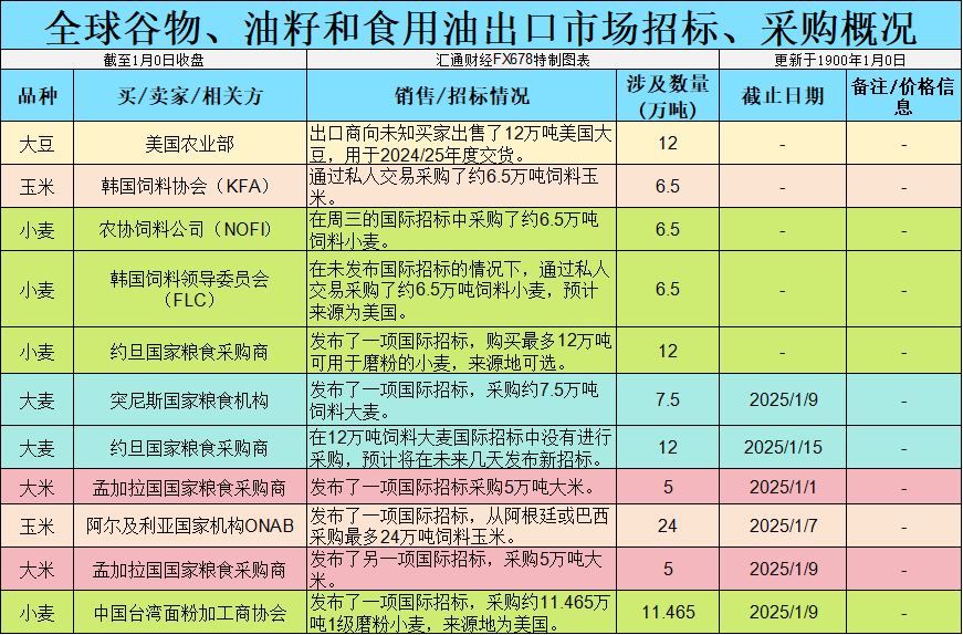 全球谷物、油籽和食用油出口市场招标、采购概况:
