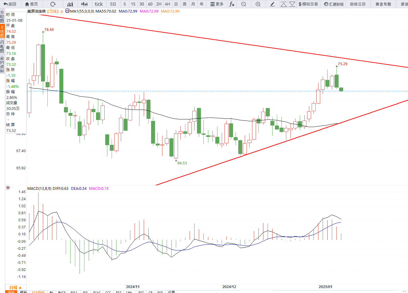 美原油日线图,来源易汇通)