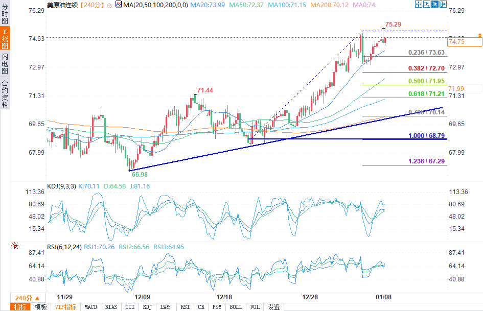今日预期的交易区间介于73.45美元的支撑位和76.45美元的阻力位之间。