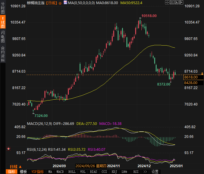 当前棕榈油市场面临几个不确定因素。首先,马来西亚的出口需求依然未能恢复强劲增长。根据市场预期,马来西亚1月1日至10日的棕榈油出口数据将在周五发布,预计数据将显示12月出口下降2.5%至7.8%。这一出口表现的疲软,加之全球需求预期低迷,令市场承压。