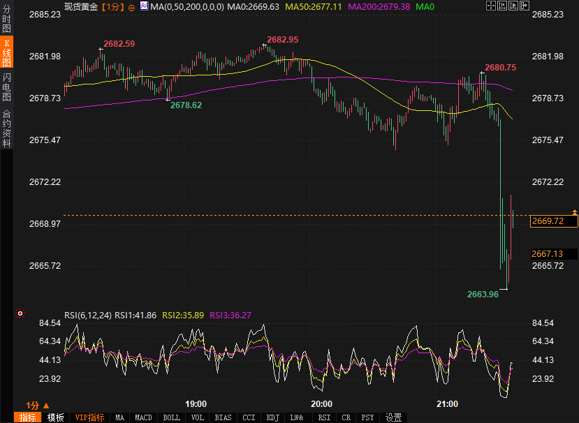 现货黄金则迅速跳水15美元跌破2670关口,最低下探至2663.96美元/盎司。