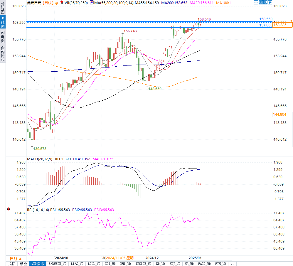 汇通财经APP讯——周五美元/日元维持强势,因美日利差扩大及日本经济疲软表现。尽管市场避险情绪和日本可能干预汇市提供一定支撑,但美联储鹰派立场及强势美元仍主导走势。技术面显示汇价短期倾向多头,阻力位在158.55、159.00及160.00;下方支撑位为157.55、157.00及156.75。非农数据或为市场注入新动能,短期内美元/日元韧性依旧强劲。