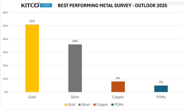 Kitco News 2025 年顶级金属调查显示,零售交易商仍然相信黄金在不稳定的世界中表现出色的能力,而行业专家也认为白银价格有可能在今年下半年迎头赶上。