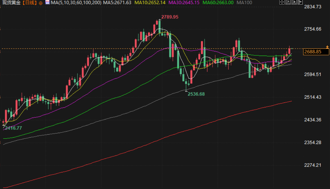现货黄金交投于2689.26附近,即使强于预期的美国就业数据强化了美联储今年可能不会大刀阔斧降息的预期,但特朗普新政府政策的不确定性提升了避险吸引力依然支撑着金价,