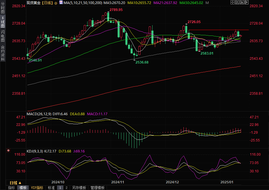 现货黄金窄幅震荡,目前交投于2666.66美元/盎司附近。金价周一从上周五触及的一个月高位附近下跌近30美元,盘中最低曾触及2656.73美元/盎司,收报2662.83美元/盎司,上周强劲的就业报告巩固了美联储今年将谨慎降息的预期美元急升至逾两年最高,美债收益率刷新逾八个月高位,令金价受阻于2700关口,另外,加沙停战调停取得突破,也打压黄金的避险买需。