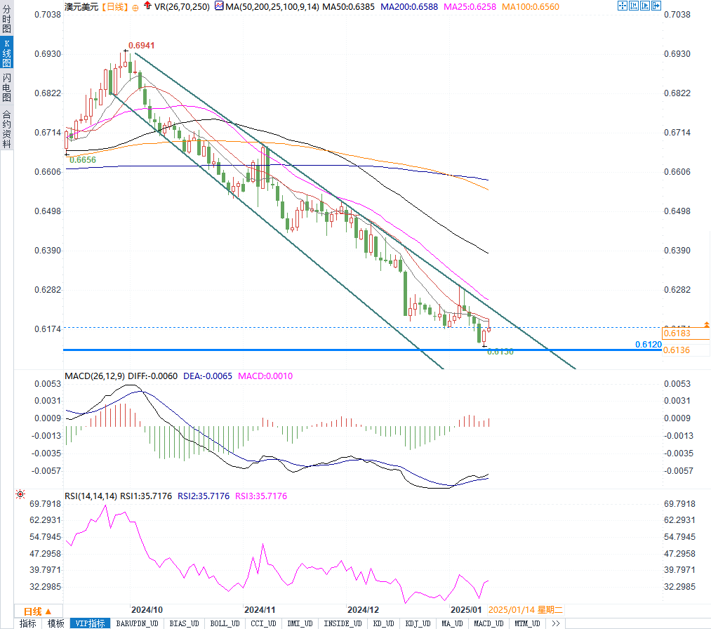 与此同时,澳大利亚国内经济增长乏力,进一步削弱了澳元的吸引力。这些基本面因素共同构成了当前澳元/美元走势的背景。
