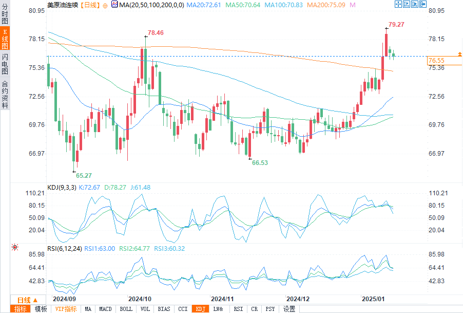 今日预期交易区间在支撑位76.00美元与阻力位79.00美元之间。