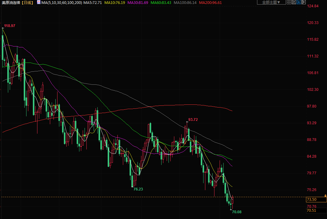 现货白银下跌0.7%,至每盎司23.30美元。铂金下跌2.2%,至每盎司999.73美元,钯金下跌3.5%,至1881.47美元。