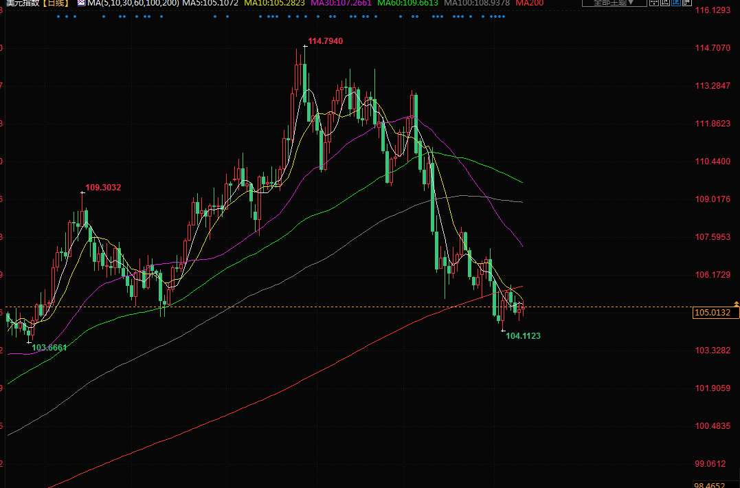 美元指数已经下跌了8%以上,随着美联储放缓加息步伐,国债等资产的收益率将会降低,美元的吸引力将会减弱。在下午的交易中,