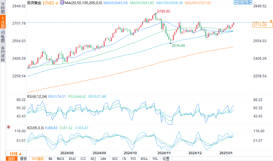 现货黄金报2713.07美元/盎司,涨幅0.61%。