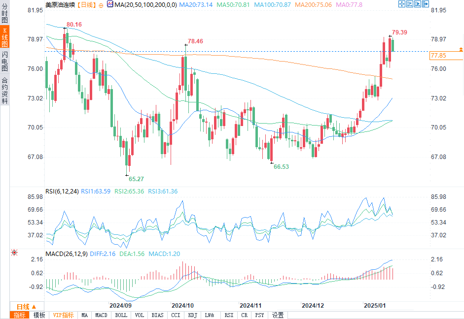 地缘政治和需求信号削弱了市场乐观情绪以色列和哈马斯达成停火协议,限制了额外的收益,缓解了对中东地缘政治风险的担忧。在需求方面,2025年1月初,全球石油消费量比去年同期增长了120万桶/天,略低于预期。摩根大通(JPMorgan)分析师预计,受印度节日旺季和中国农历新年旅游的推动,未来几周需求将更为强劲。