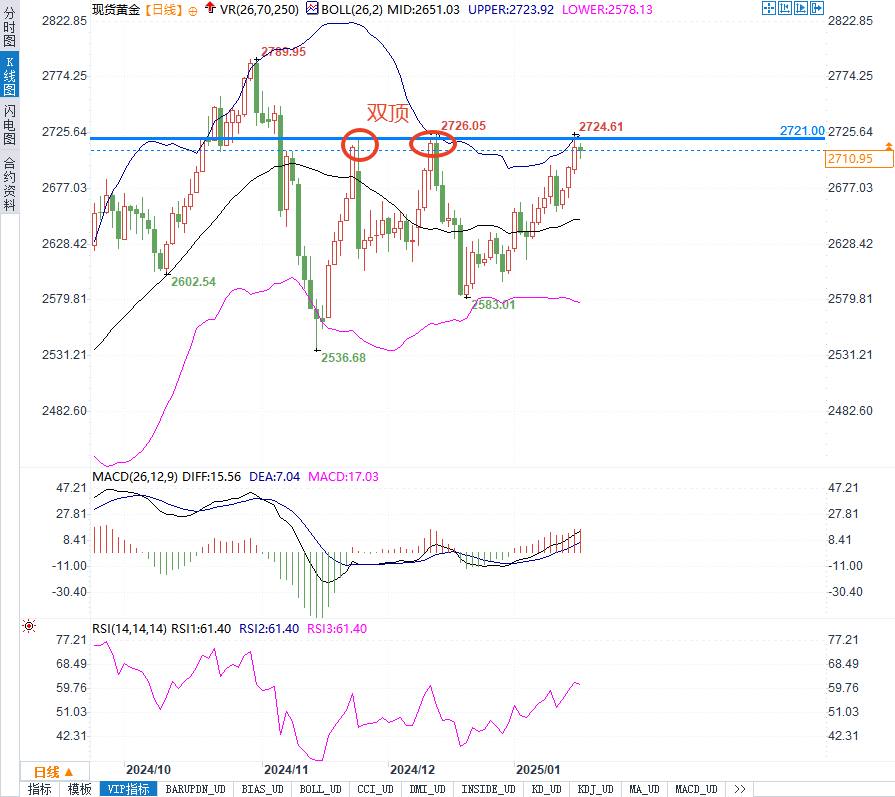 总体来看,黄金价格略有回撤,但仍保持在2700美元以上。市场对美联储可能降息的预期以及特朗普政府即将发布的政策使得黄金市场充满不确定性。尽管黄金面临一定的回调压力,但其避险需求依然强劲,尤其是在全球经济和政治风险增加的背景下。