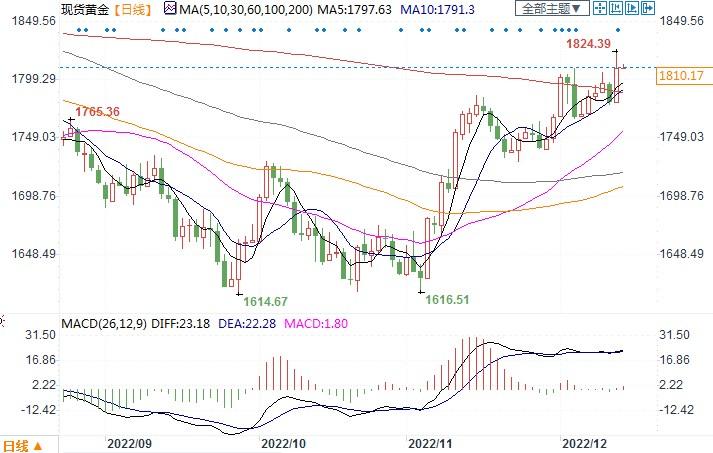 现货黄金报1810.59美元/盎司