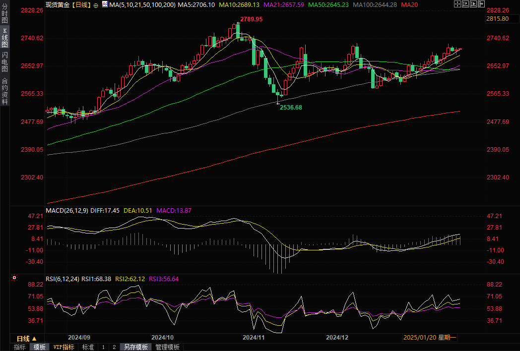 美元指数大跌1.22%,录得逾一年来最大单日跌幅,最低触及107.91,为1月7日以来新低,给金价提供支撑,金价周一收报2706.91美元/盎司,涨幅约0.17%。