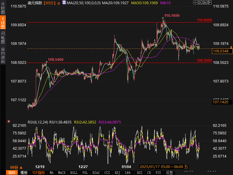 美元指数可能会面临一定的波动,尤其是在特朗普上任后的政策发布和美联储即将公布的利率决策之前。若特朗普实施更多贸易保护主义政策,美元可能会承受下行压力,尤其是在美联储降息预期的背景下。反之,如果市场对特朗普的政策持乐观态度,美元可能会再次测试110并寻求进一步的上行空间。