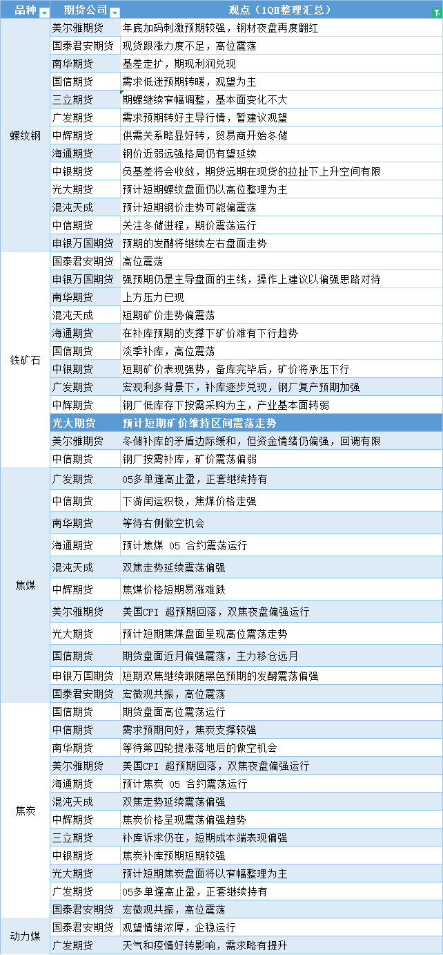 期货公司观点汇总一张图:12月14日黑色系(螺纹钢、焦煤、焦炭、铁矿石、动力煤等)