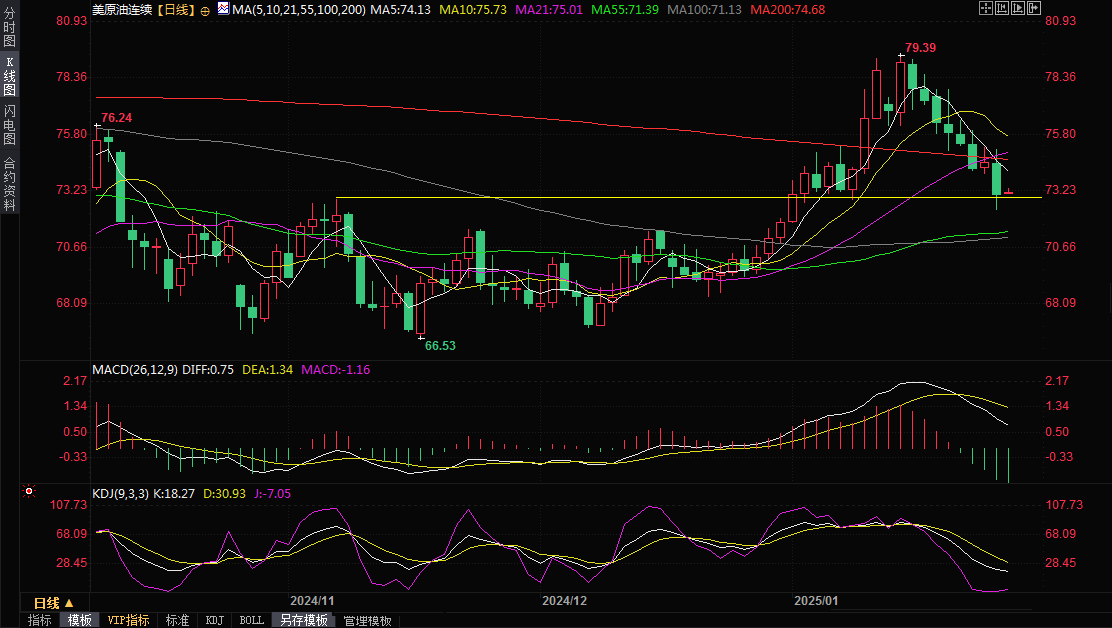 美原油勉强收盘在11月7日高点和1月9日低点72.88上方,需要留意逢低买盘支撑情况,但若跌破该支撑,则