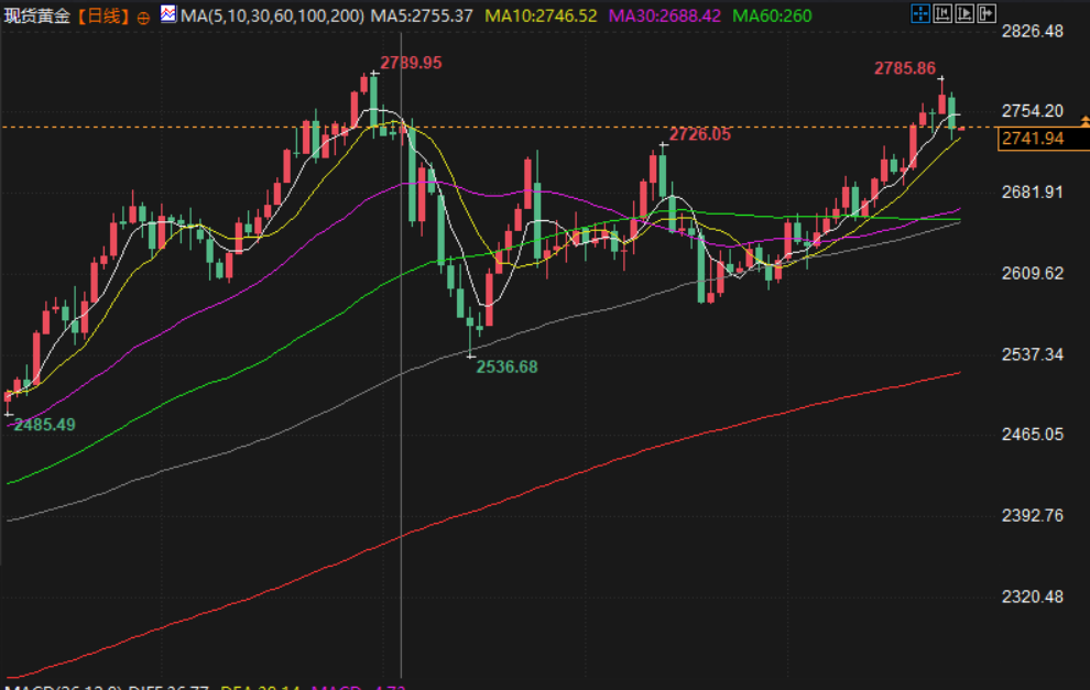 现货黄金交投于2740.91附近,金价周一下跌超过1%,从上一交易日触及的接近历史高点回落,原因是DeepSeek震撼来袭引发的更广泛市场下跌,促使投资者卖出黄金头寸套现,