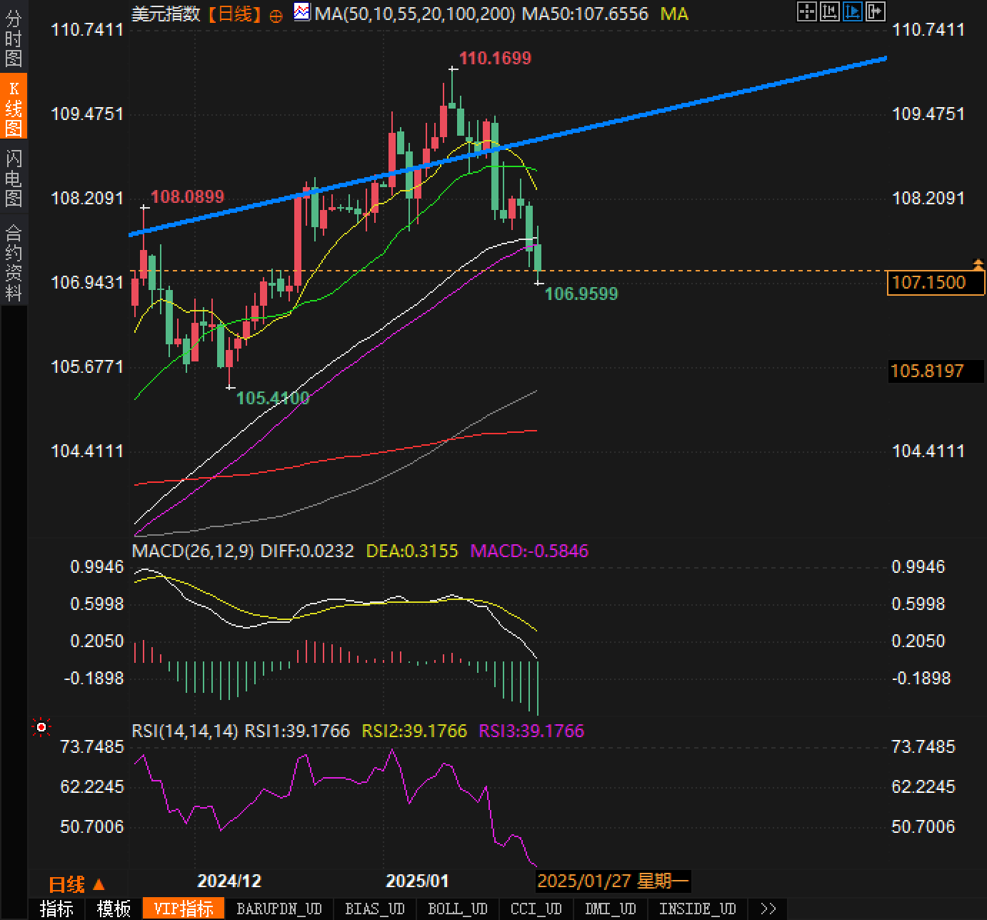 美元指数下方的关键支撑位分别位于106.52和105.89。这两个水平是美元空头可能介入的区域,若跌破这些支撑位,