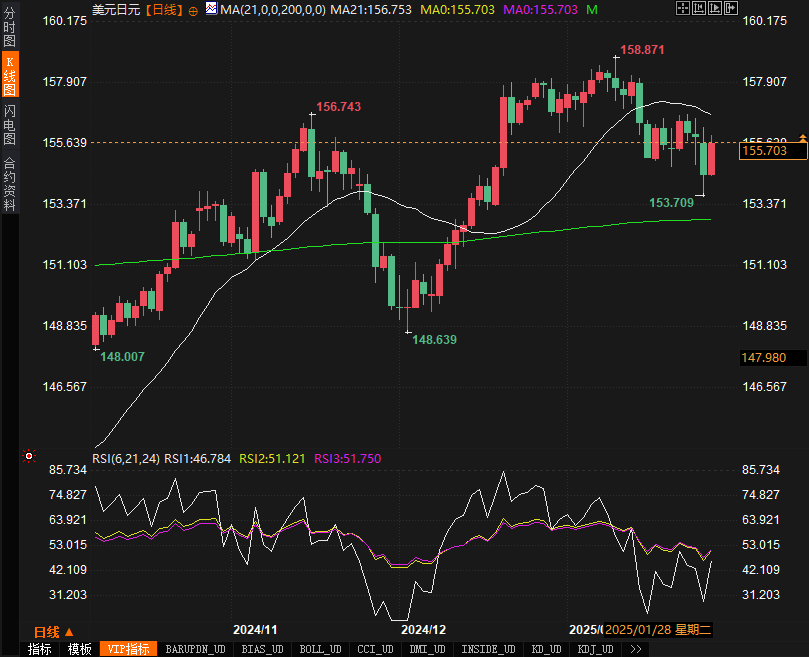 美元兑日元在155.70附近表现出较强的上行势头,短期内可能测试156.00阻力位。