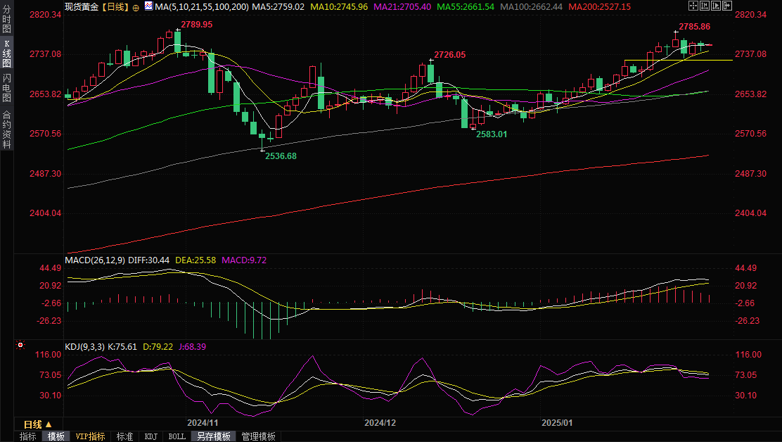 现货黄金窄幅震荡,目前交投于2760美元/盎司附近。金价周三震荡运行,美联储公布利率决议之后,金价一度跌至2744.65美元/盎司附近,三在美联储主席鲍威尔新闻发布会之后,金价收复大部分跌幅,收报2759.73美元/盎司,跌幅仅0.13%。此前美联储如市场普遍预期的那样维持利率稳定,但对未来降息的时间没有提供什么明确的信息。