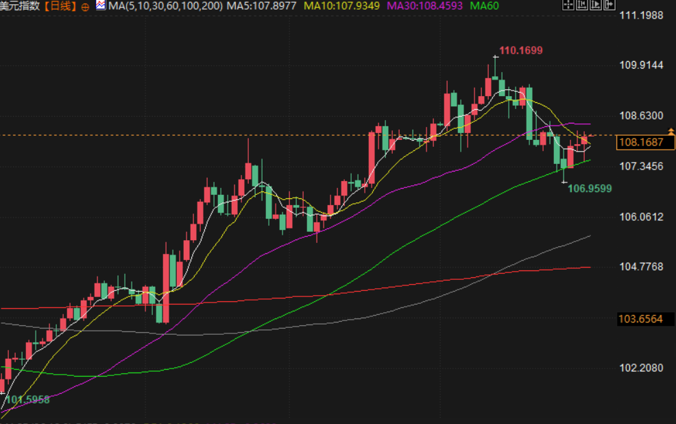 美元指数上涨0.2%,报108.12。美联储周四将指标隔夜利率维持在4.25%-4.50%的区间,官员们不再提及通胀已朝着美联储2%的通胀目标 "取得进展"。