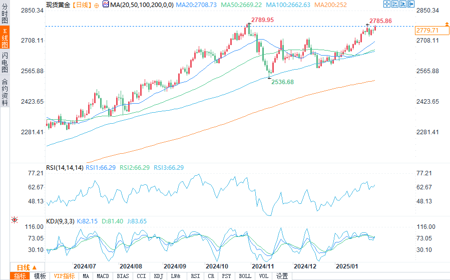 汇通财经APP讯——周四(1月30日)欧盘时段,黄金价格大幅走高,接近每盎司2,790.17美元的历史高点。突破这一水平可能为进一步的上行势头打开大门。支撑位位于2,730.56美元,若跌破该水准,人气将转为看跌,可能引发金价跌向50日移动均线2,669.51美元。随着市场对政治和经济发展的反应,交易员正密切关注这些关键技术位。