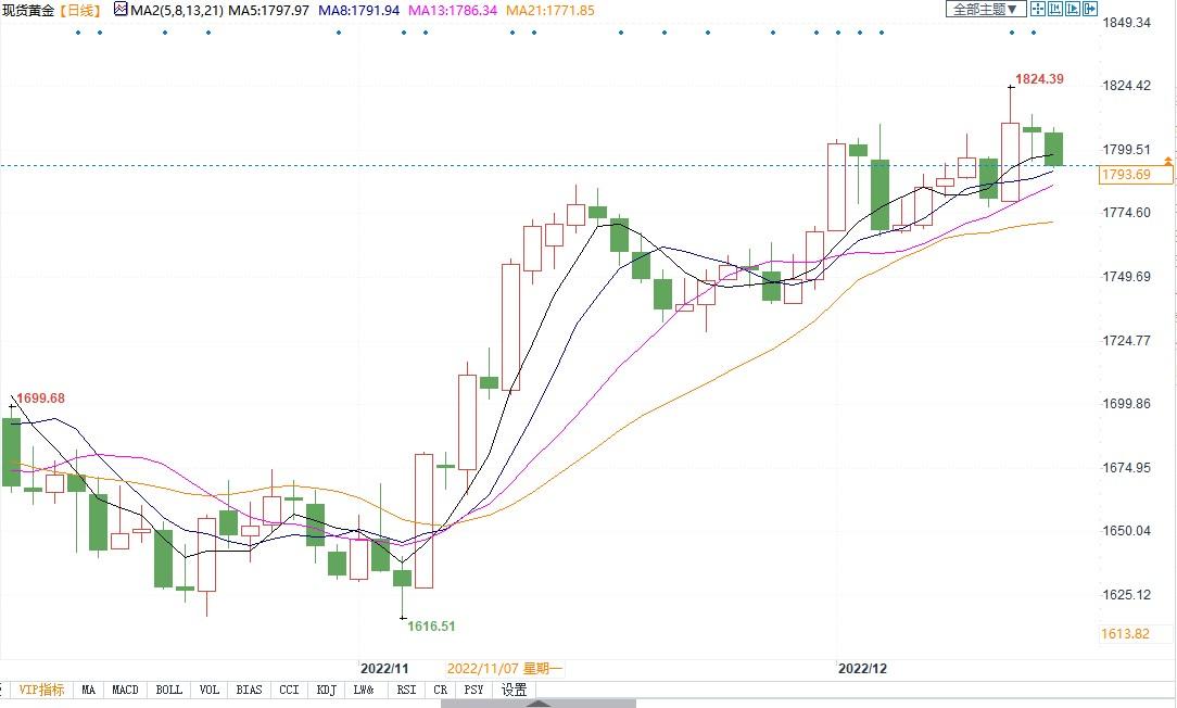 汇通财经APP讯——12月14日,市场分析师James Skinner撰文称,2022年黄金价格变化不大,但随着美元最近显示下滑迹象,黄金可能在未来一年有机会表现得更好。