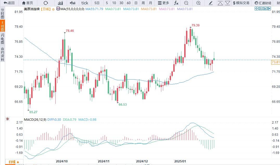 美原油亚盘时段大幅高开之后有所回落,交投于73.84美元/附近,美国总统特朗普周六下令从周二开始对加拿大和墨西哥进口商品征收25%的关税。
