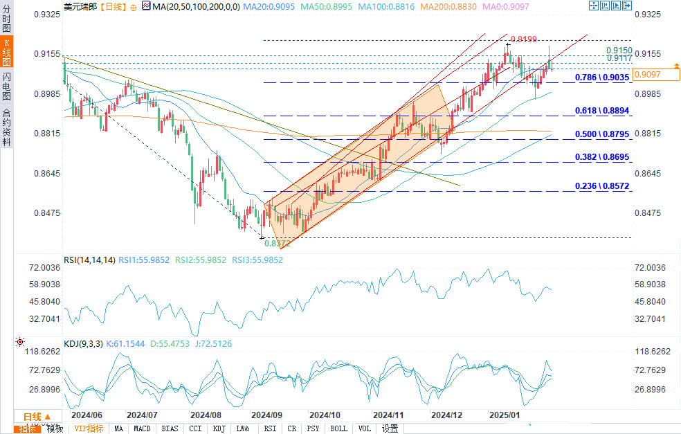 瑞郎方面,目前没有发生重大改变。瑞士央行在上次政策会议上将利率下调了50个基点,使政策利率降至0.50%,并放弃了在未来几个季度进一步降息的言论。