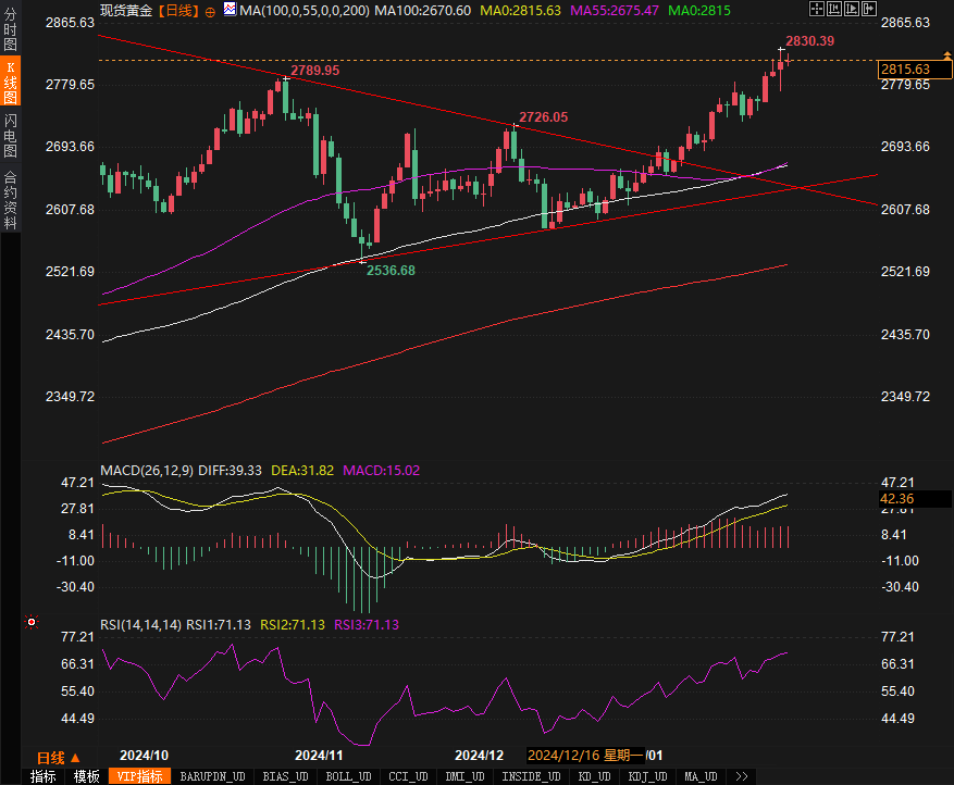 总体而言,黄金市场目前处于高位震荡阶段,投资者需密切关注基本面和技术面的变化,以把握未来的交易机会。在当前复杂多变的市场环境下,黄金作为避险资产的地位依然稳固,但其短期走势仍需谨慎对待。