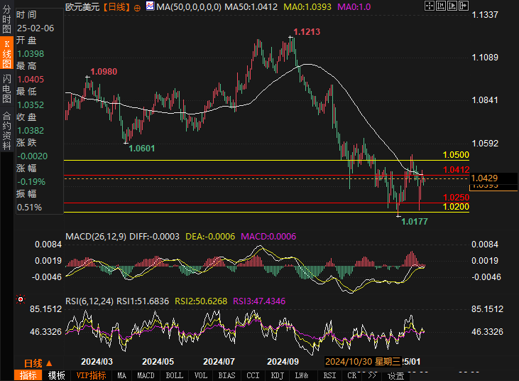 欧元/美元(EUR/USD)在近期的走势中展现了较大的波动,短期内面临重要的技术阻力与支撑。根据FXStreet的分析,欧元在1.0210的三周低点附近出现反弹,但上涨势头被50日简单移动平均线(SMA)1.0412处的压力所限制,进一步上涨面临较大挑战。