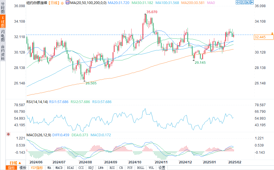现货白银报32.021美元/盎司,涨幅0.70%。COMEX黄金报2932.7美元/盎司,涨幅1.56%,COMEX白银报32.455美元/盎司,涨幅0.04%。
