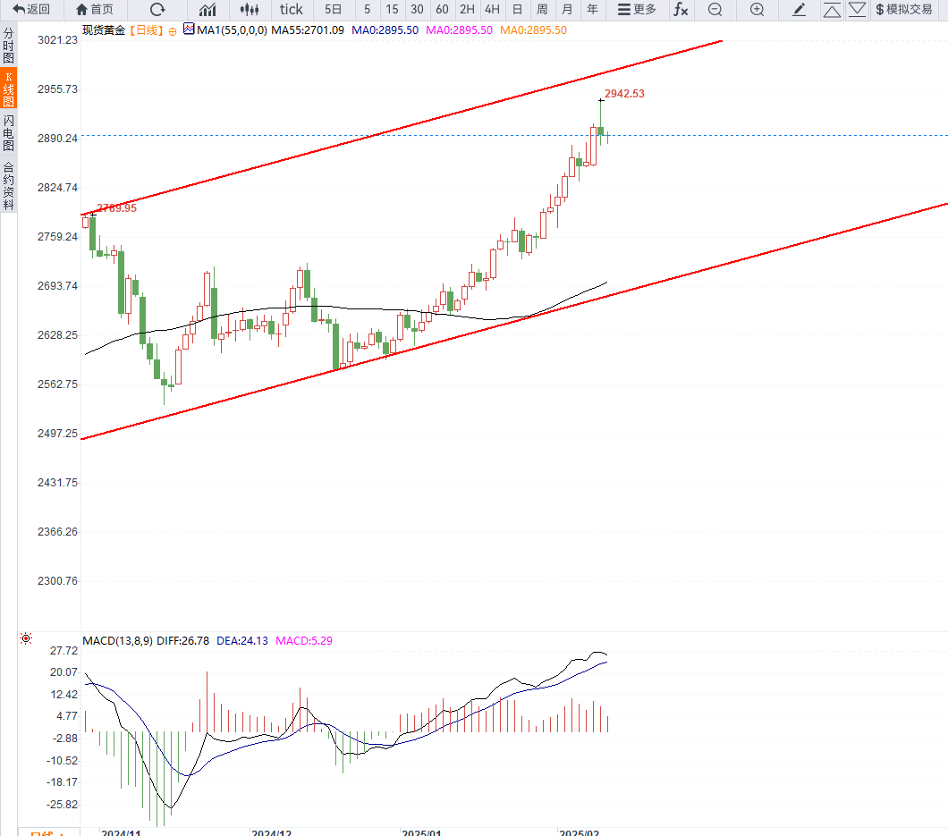 编辑观点黄金市场正处于历史性突破的边缘,投资者需关注两大关键变量:美联储的货币政策和全球贸易政策的走向。若通胀数据维持高位,可能导致美联储延迟降息,从而抑制金价涨幅。然而,若贸易摩擦进一步加剧,市场的避险情绪可能推动金价突破3,000美元。机构资金的持续流入反映出市场对贵金属的长期信心,短期回调或许只是上行趋势中的整理阶段。
