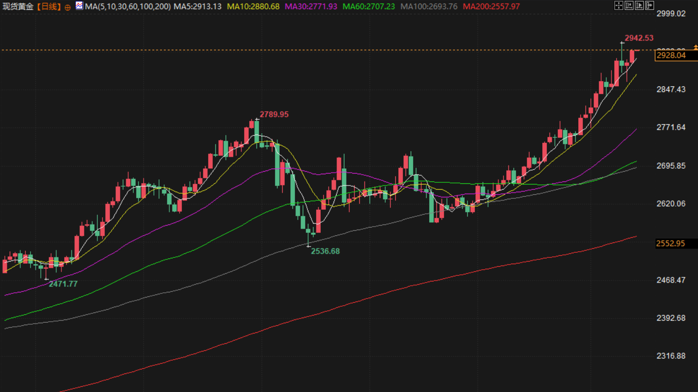 现货金上涨0.4%,至每盎司2,915.76美元,向周二创下的历史最高点2,942.70美元回升。美国期金收高0.6%,报2,945.40美元。特朗普周四公布了对每个对美国进口商品征收关税的国家征收对等关税的路线图。
