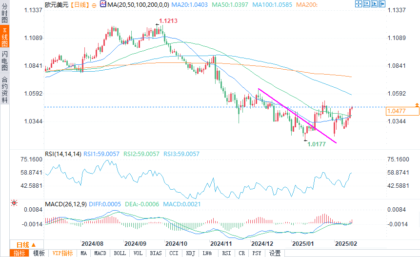 从技术面来看,欧元/美元目前接近1.046的近期高点,若突破这一水平,可能会迎来更多的上行动能。不过,鉴于美元的潜在反弹风险,市场也在关注