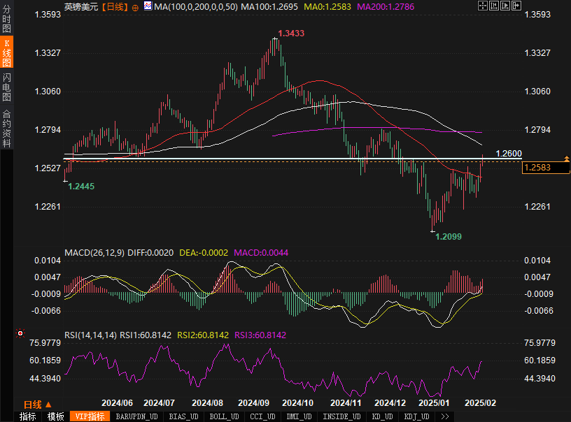 欧元兑美元上涨至1.0500,创下1月27日以来的新高。欧元上涨的另一大推动因素是市场对于俄乌局势的乐观情绪。特朗普与普京和泽连斯基的通话为市场带来了关于和平协议的积极预期,提升了投资者对欧洲经济复苏的信心。