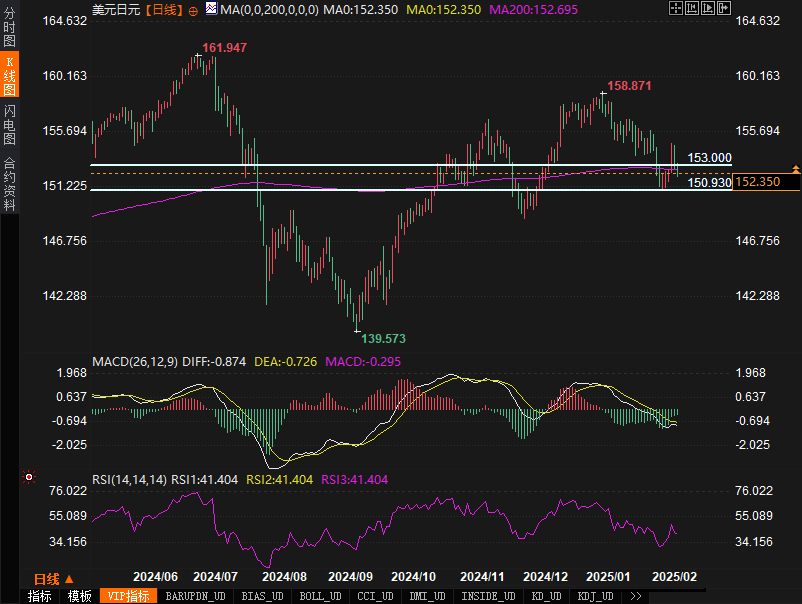 日元方面,若美元疲软的趋势持续,USD/JPY可能进一步下行。技术面上,若价格跌破150.93,可能会加剧跌势,进一步测试148.64的支撑位。