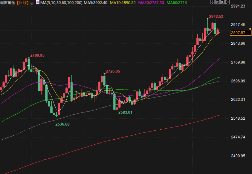 现货黄金交投于2897.92附近,金价周一回升至每盎司2900美元上方,受美元走软以及美国总统特朗普威胁征收对等关税引发的贸易担忧的支撑;