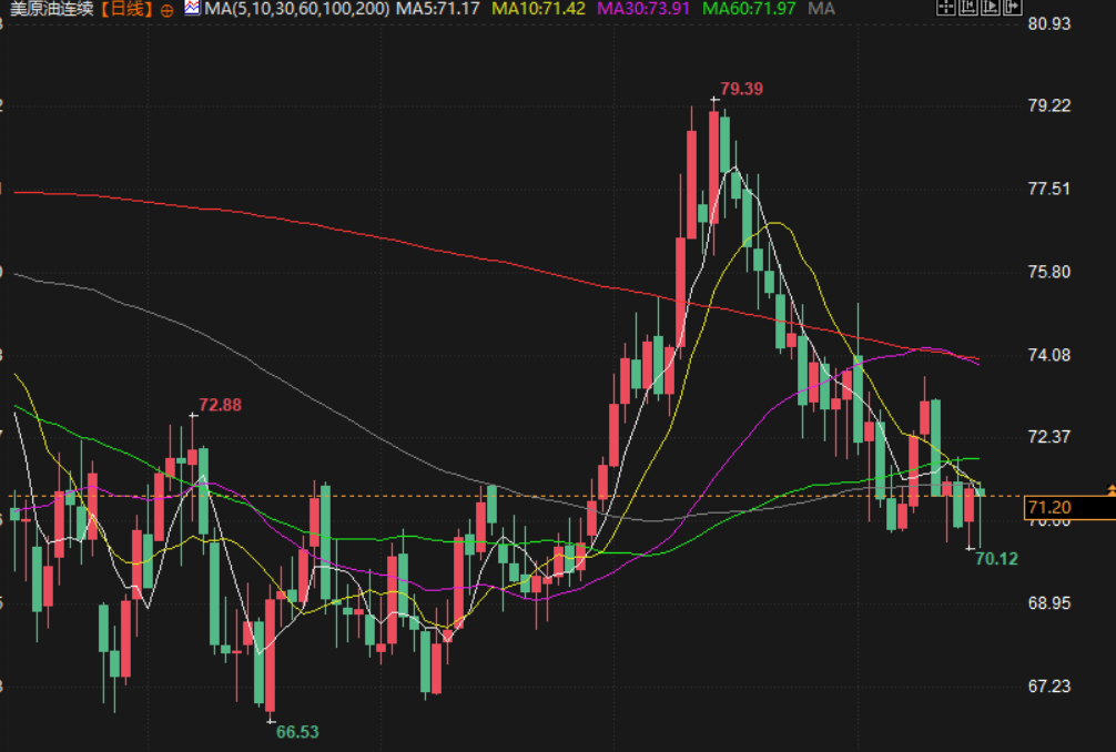 美原油微涨,交投于71.19美元/桶附近,油价周一走强,原因是里海的一个石油管道泵站遭到袭击,导致来自哈萨克斯坦的石油流动放缓。