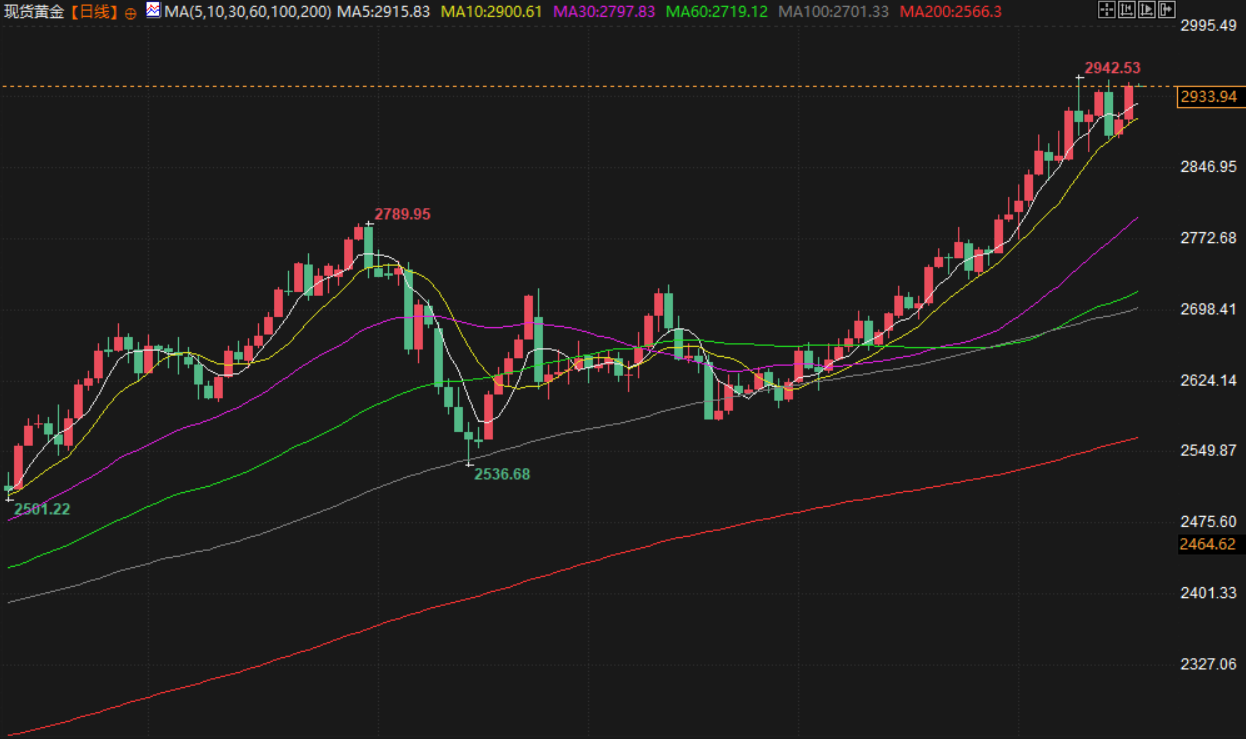 现货黄金交投于2933.72附近,金价周二上涨超过1%,美国总统特朗普关税计划的不确定性引发了对经济增长的担忧,促使避险资金流入黄金;