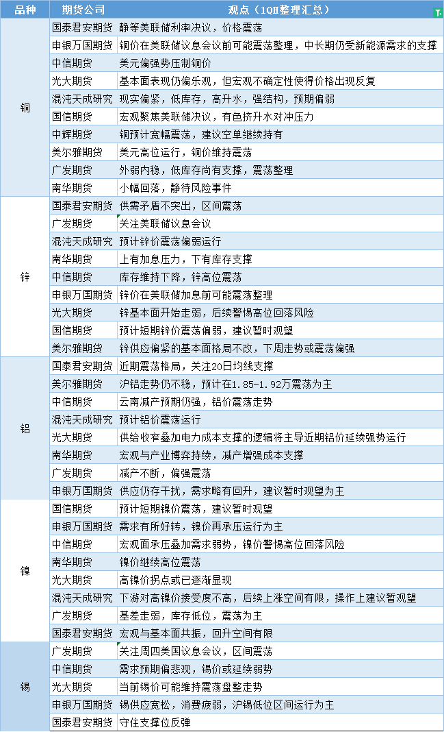 标题:期货公司观点汇总一张图:9月20日有色系(铜、锌、铝、镍、锡等)