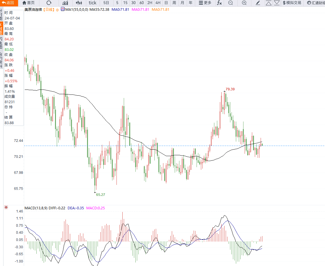 目前,WTI油价在71.80美元/桶附近震荡,